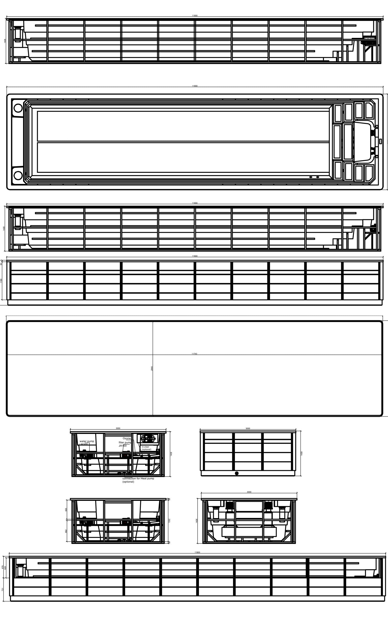 Ons isolatiesysteem met meerdere niveaus zorgt voor een maximaal gebruik van restwarmte. Een 40 mm dikke isolatie met aluminiumlaag op de buitenmuren en in de vloer zorgt ervoor dat de warmte niet kan worden afgegeven aan de buitenlucht. Als de pomp draait, wordt de restwarmte ook hergebruikt om het water te verwarmen. Zo bespaar je geld omdat je het zwembad verwarmt en niet de omgeving. Voor de geluidsisolatie wordt een geluidsabsorberende vezel gebruikt. Hierdoor wordt het geluid van de pompen tot een minimum beperkt. Het hele systeem is heel gemakkelijk te onderhouden. Een pomp kan bijvoorbeeld vervangen worden zonder het water af te tappen.