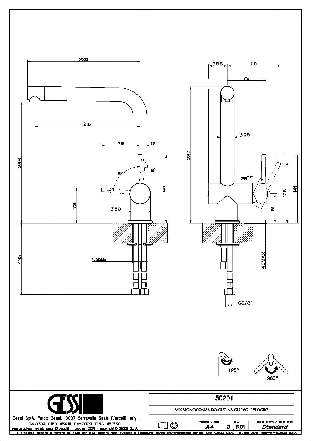 Gessi Logik design eenhendel keukenkraan chroom met 120gr draaibaar uitloop uiteinde 50201
