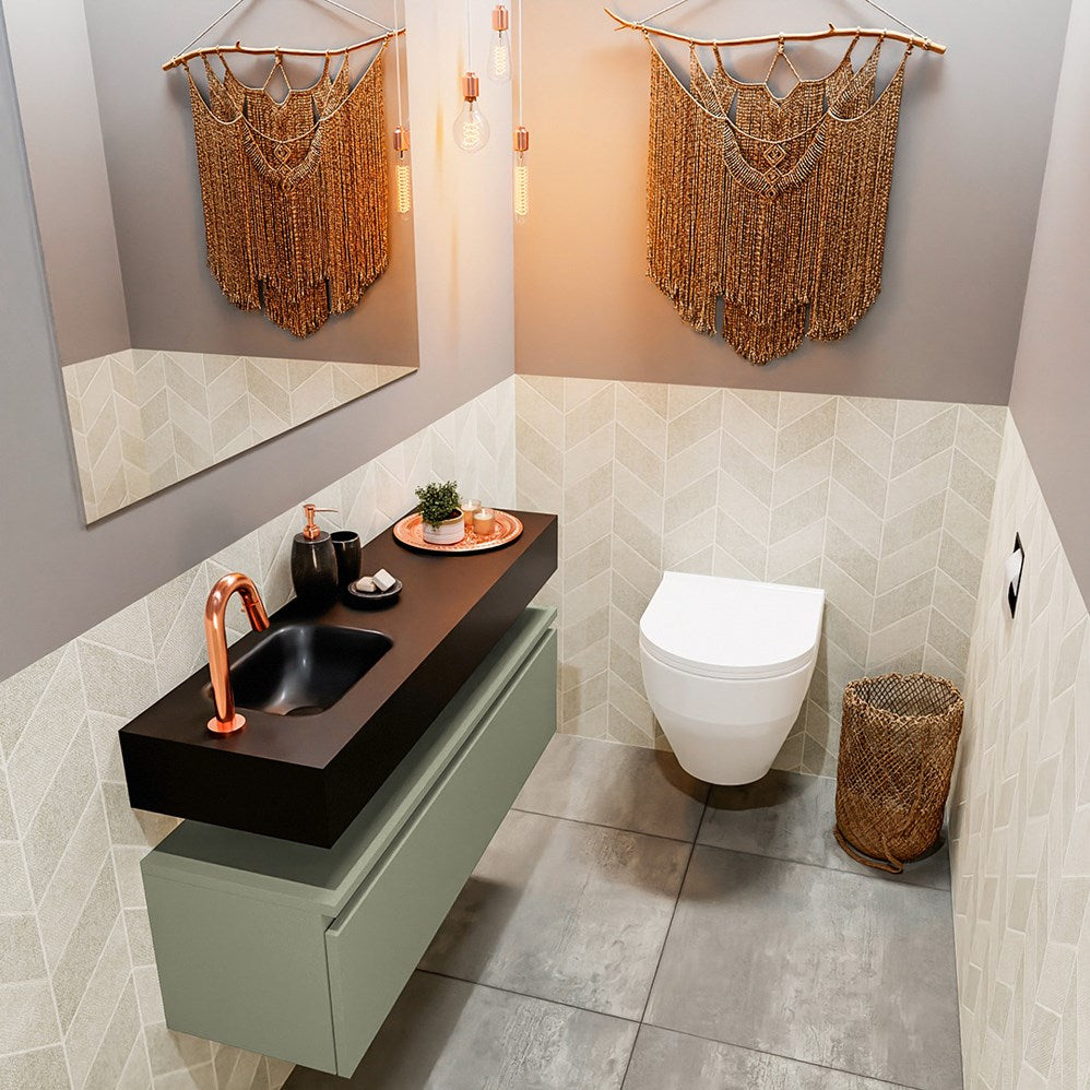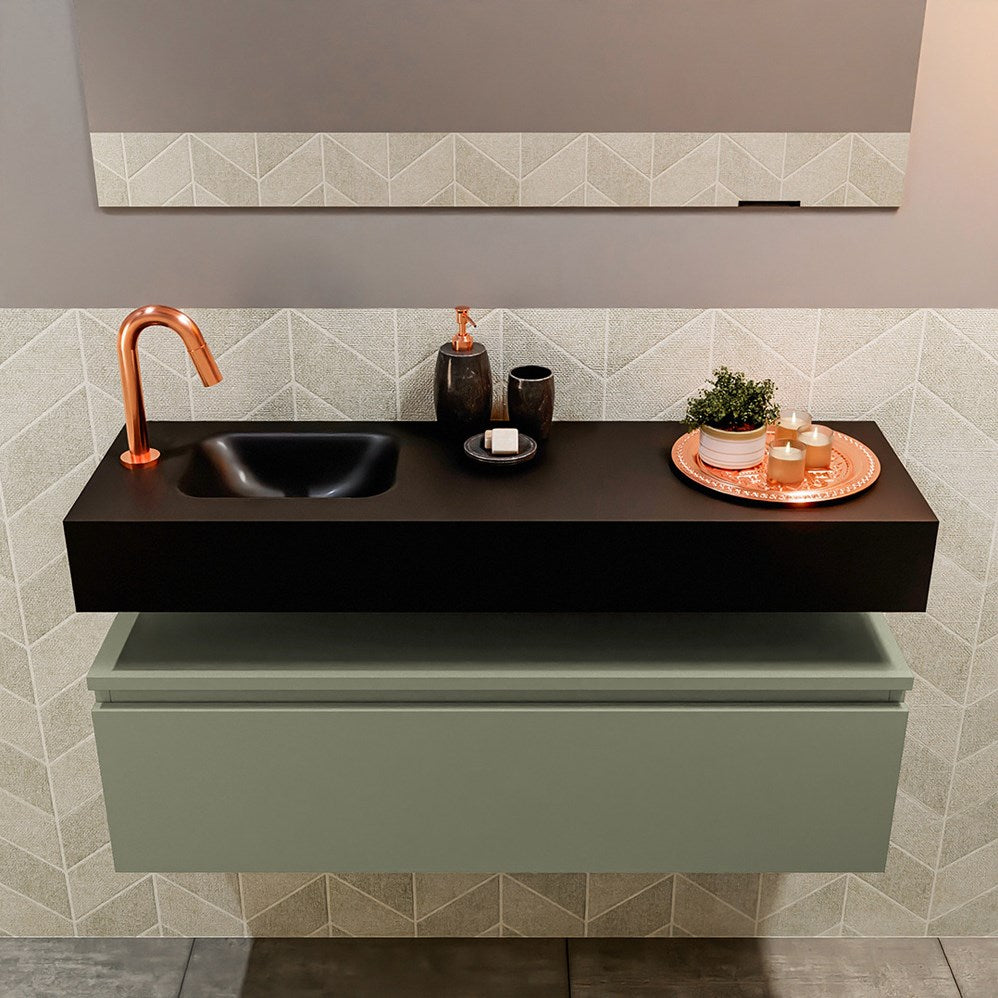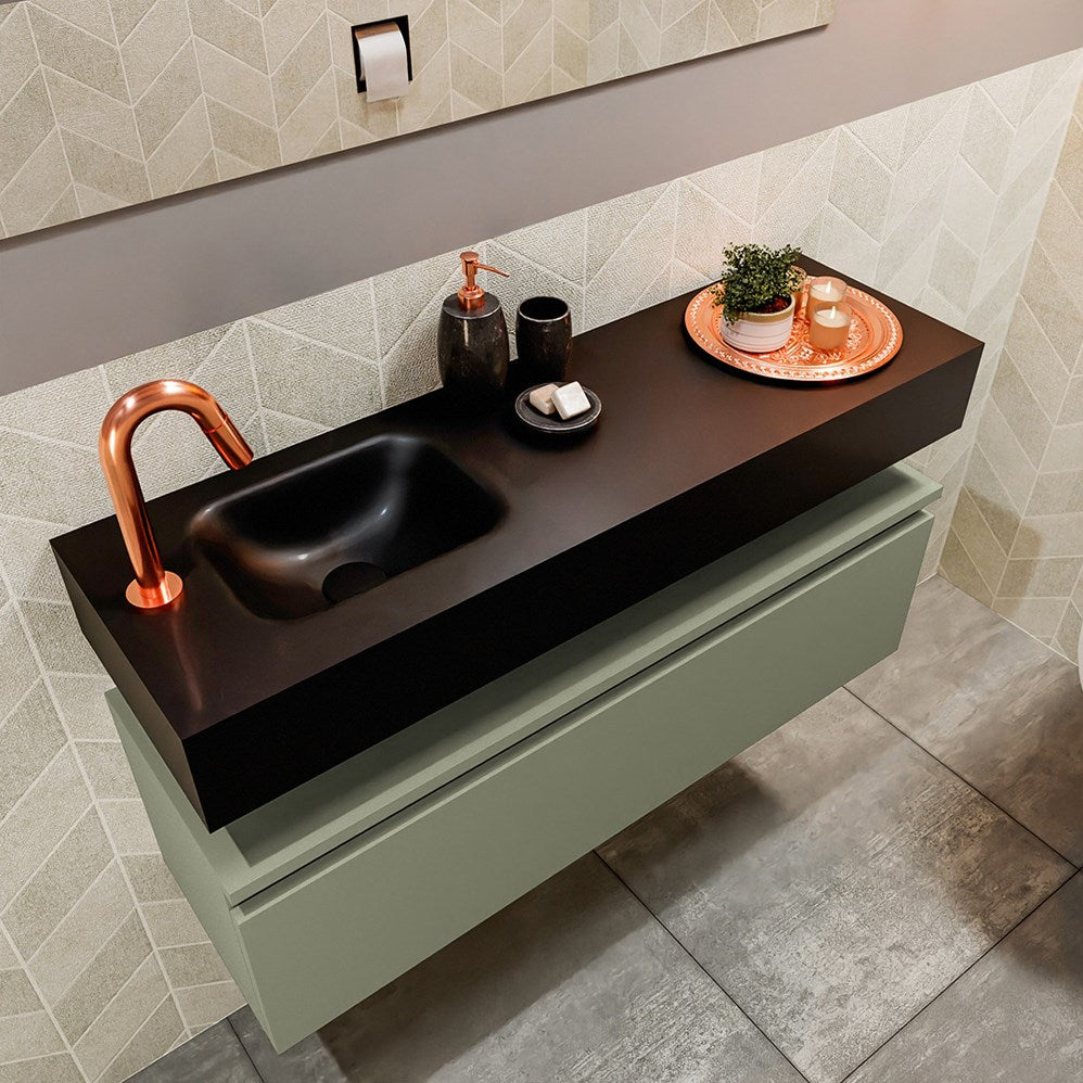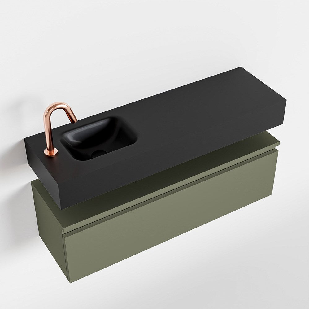 MONDIAZ ANDOR 100cm toiletmeubel army. LEX 100cm wastafel urban positie links. Met 1 kraangat