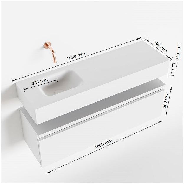 - Breedte wastafel: 100cm