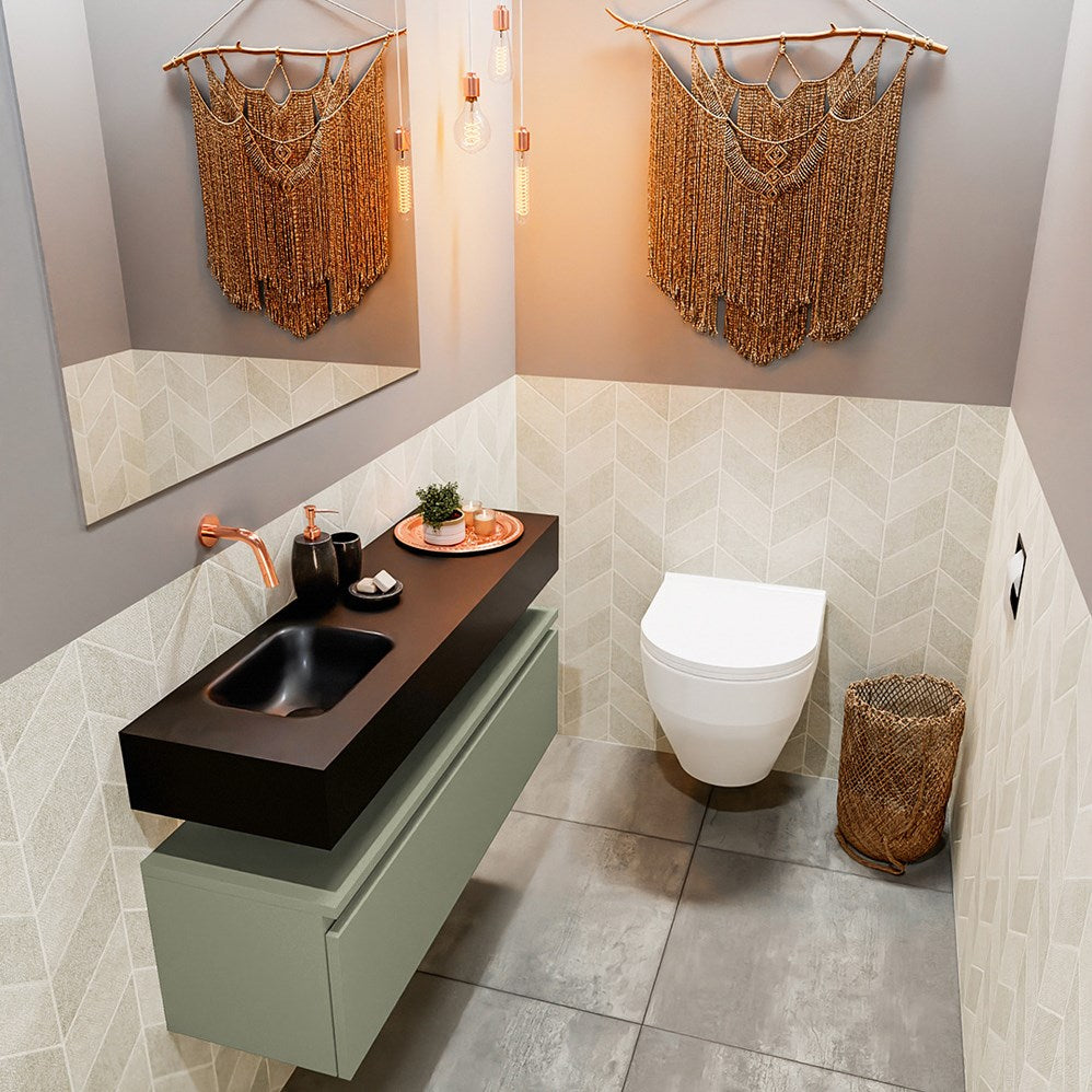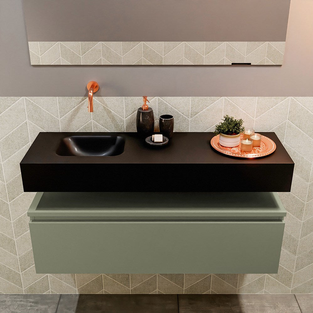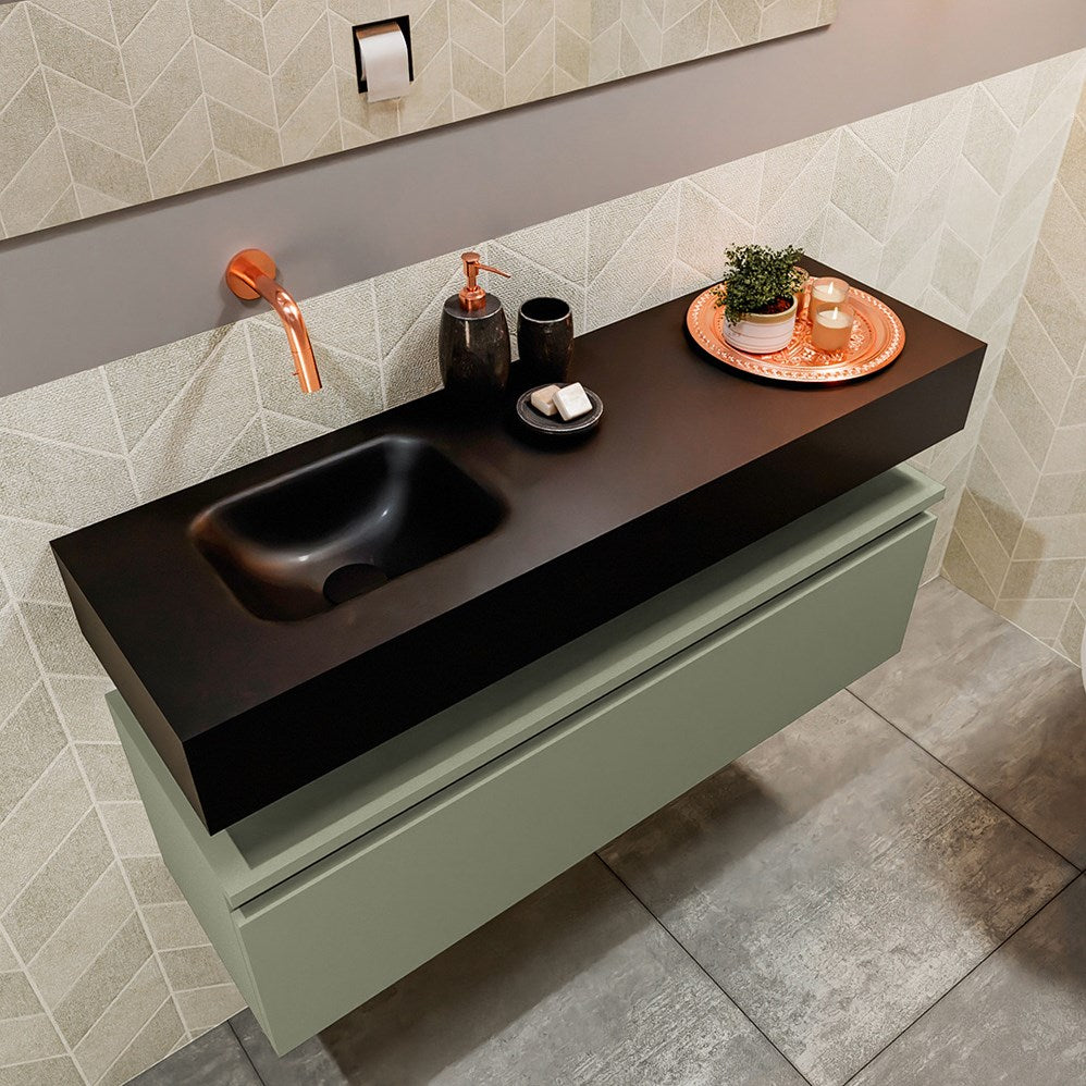 MONDIAZ ANDOR 100cm toiletmeubel army. LEX 100cm wastafel urban positie links. Zonder kraangat