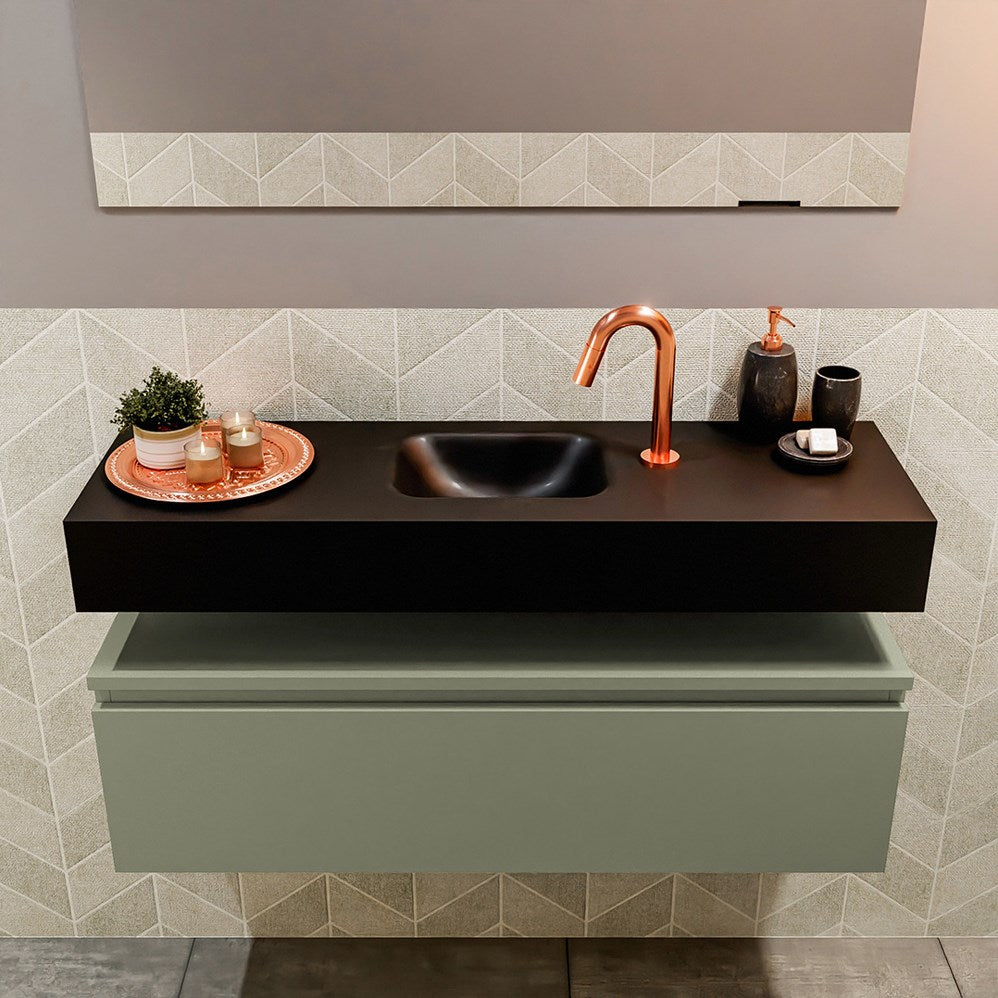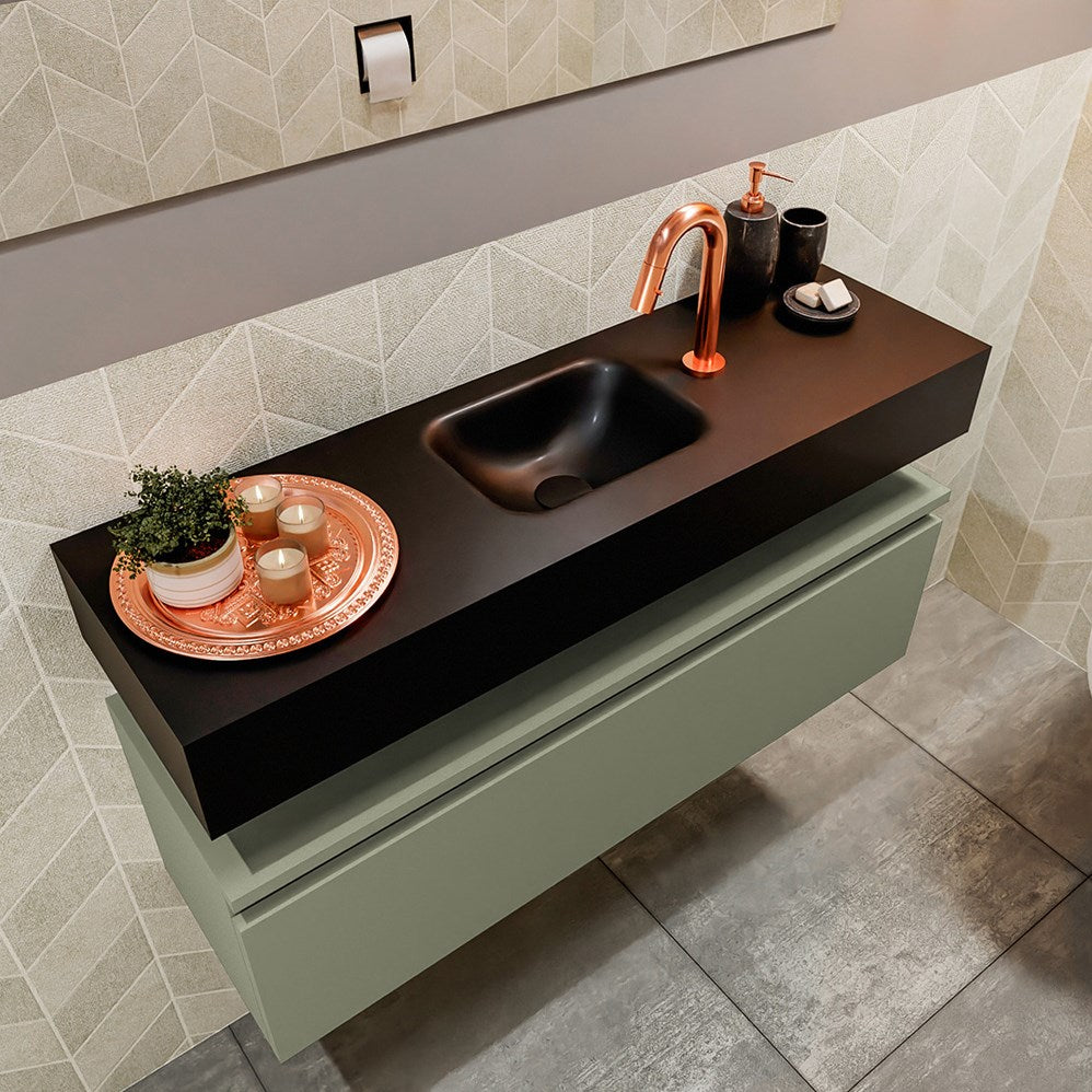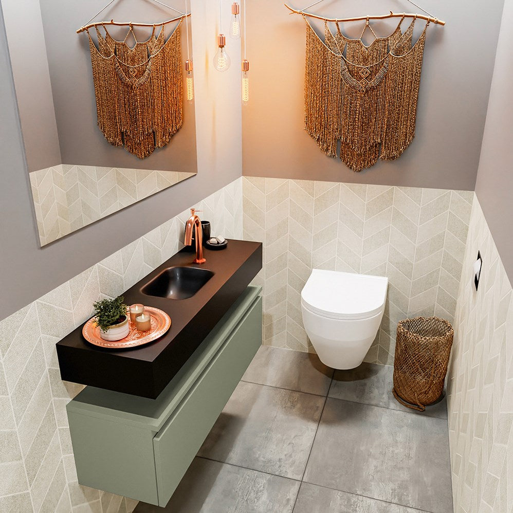 MONDIAZ ANDOR 100cm toiletmeubel army. LEX 100cm wastafel urban positie midden. Met 1 kraangat