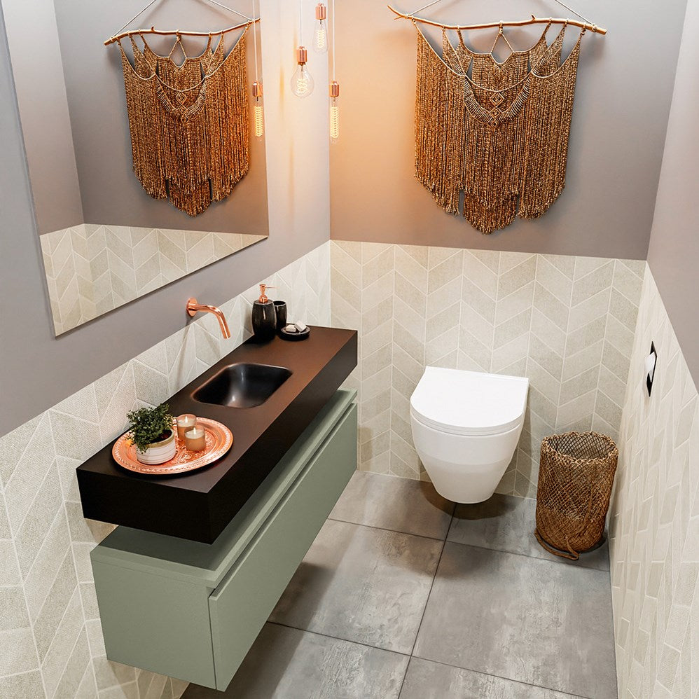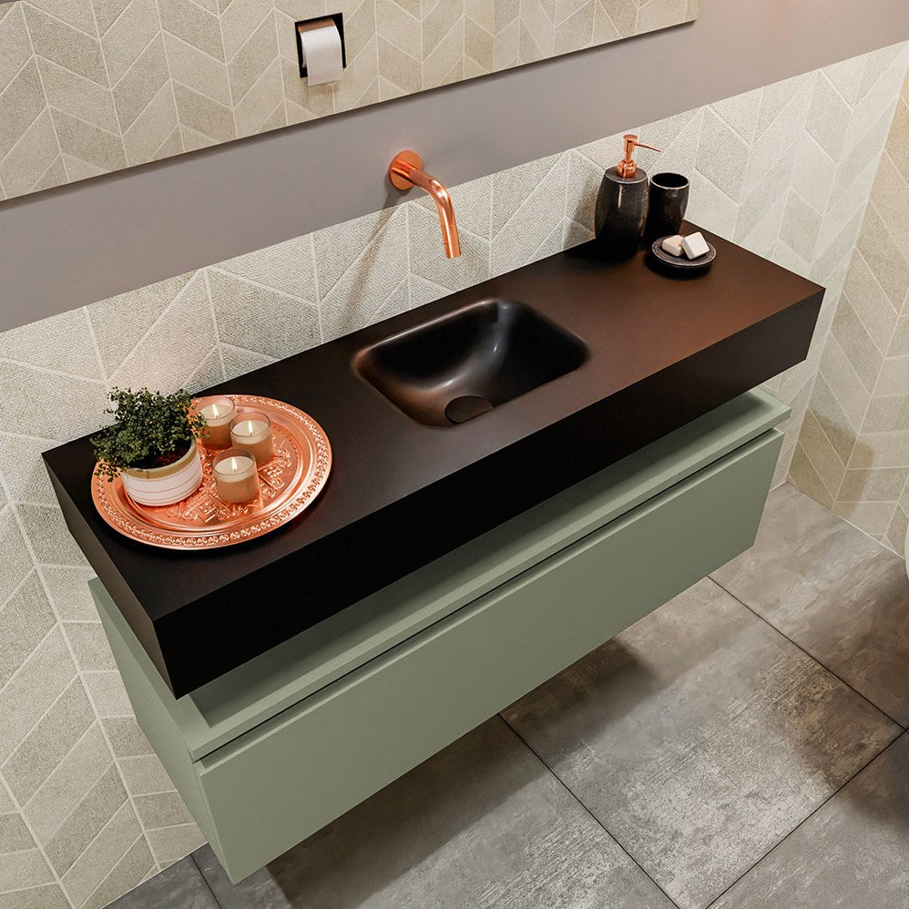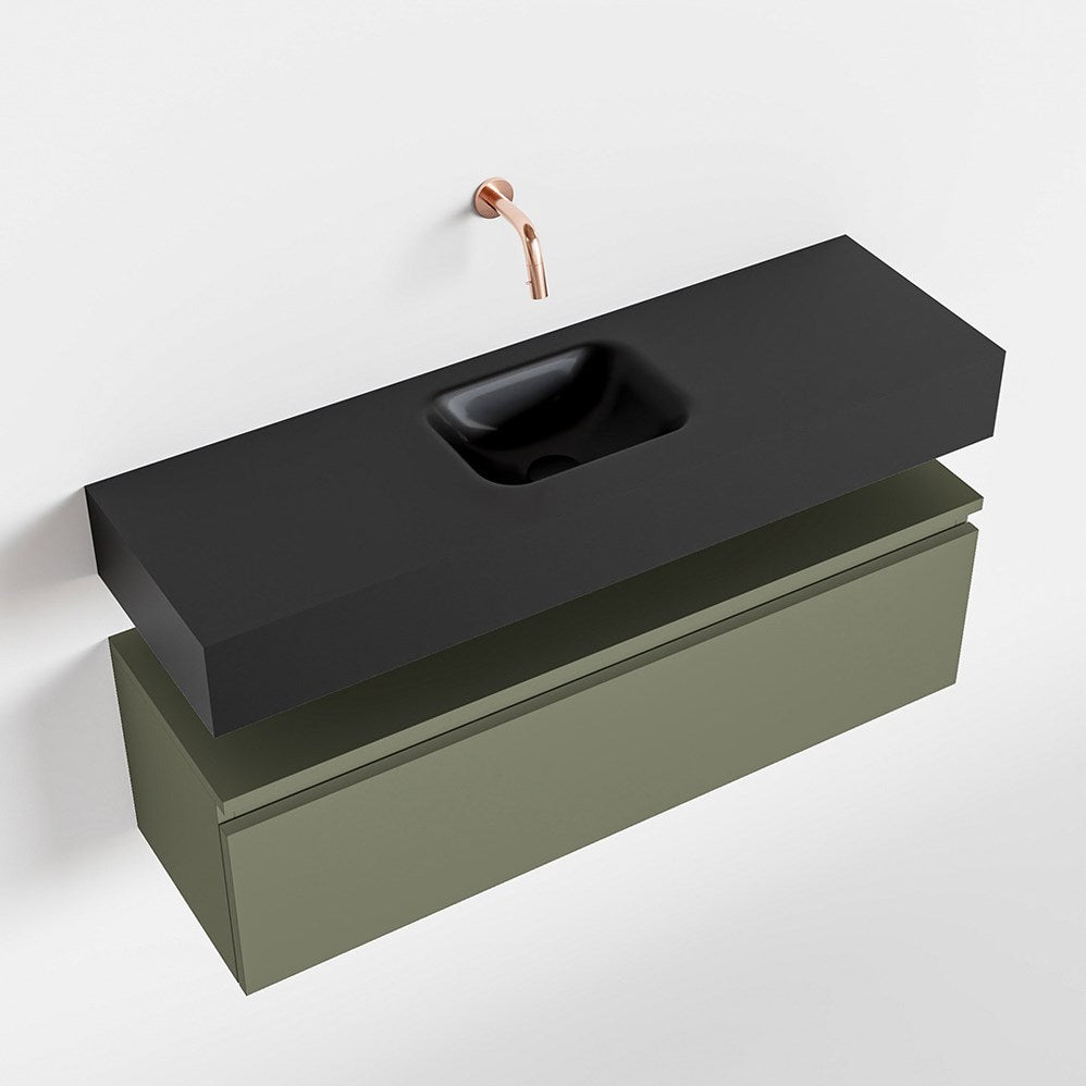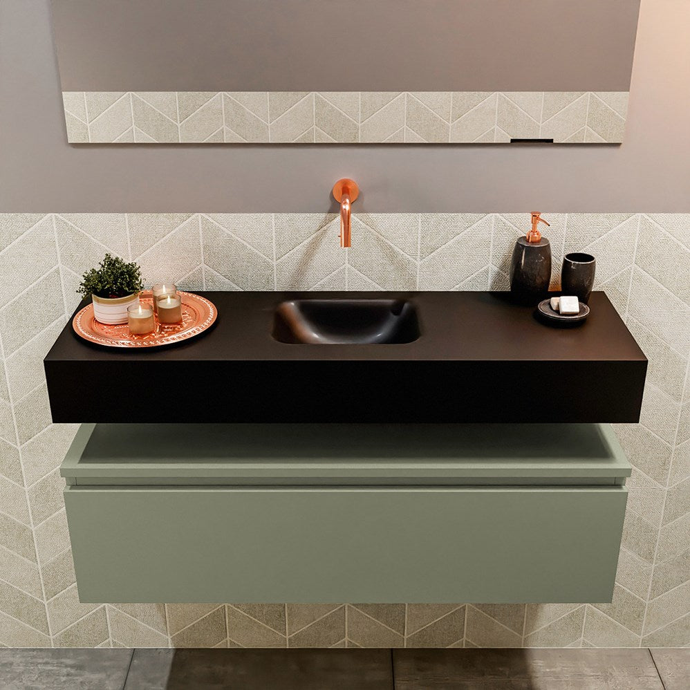 MONDIAZ ANDOR 100cm toiletmeubel army. LEX 100cm wastafel urban positie midden. Zonder kraangat
