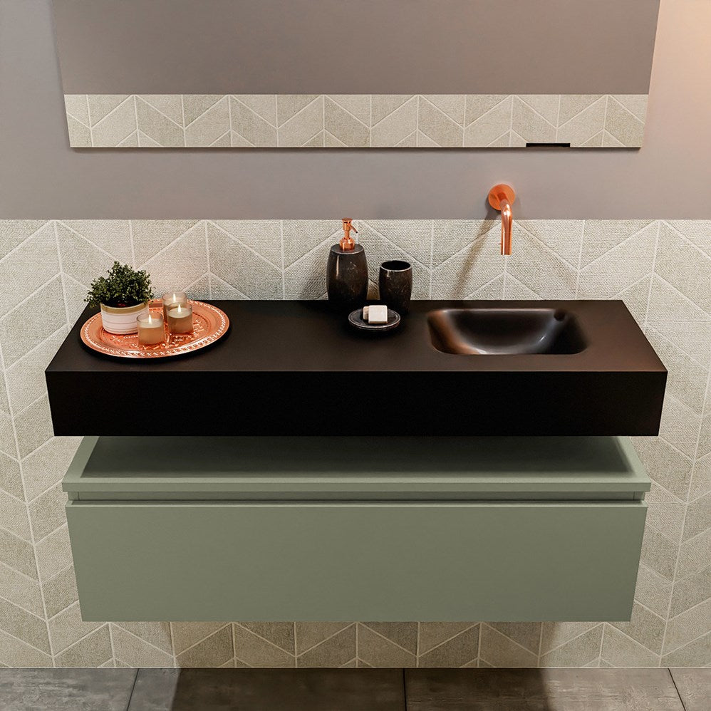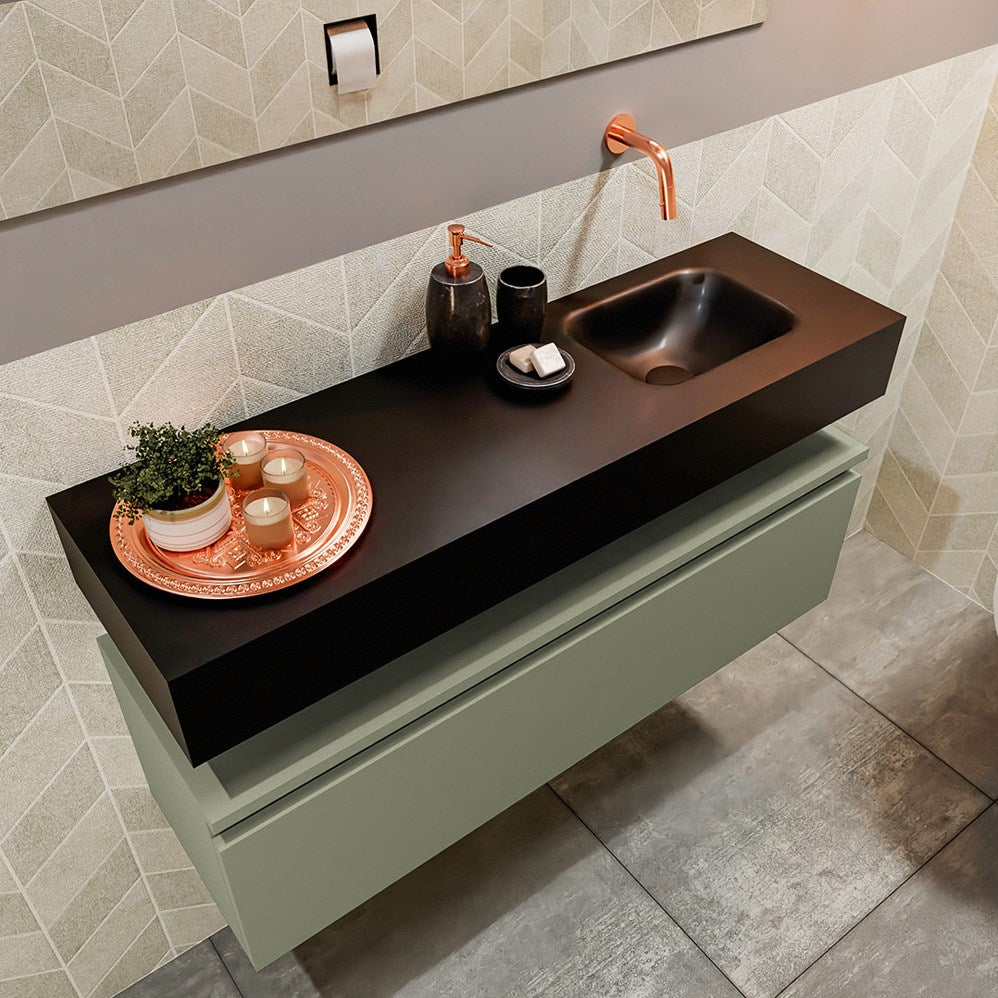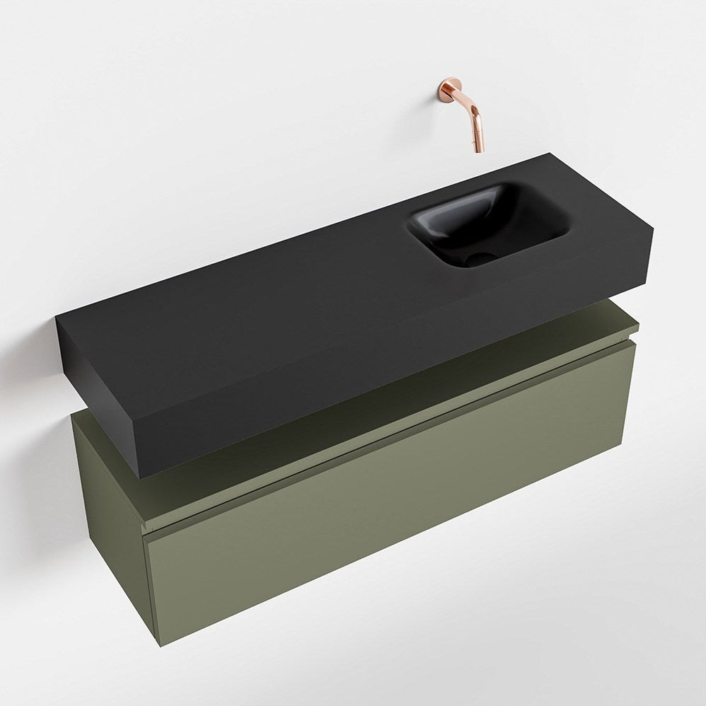 MONDIAZ ANDOR 100cm toiletmeubel army. LEX 100cm wastafel urban positie rechts. Zonder kraangat