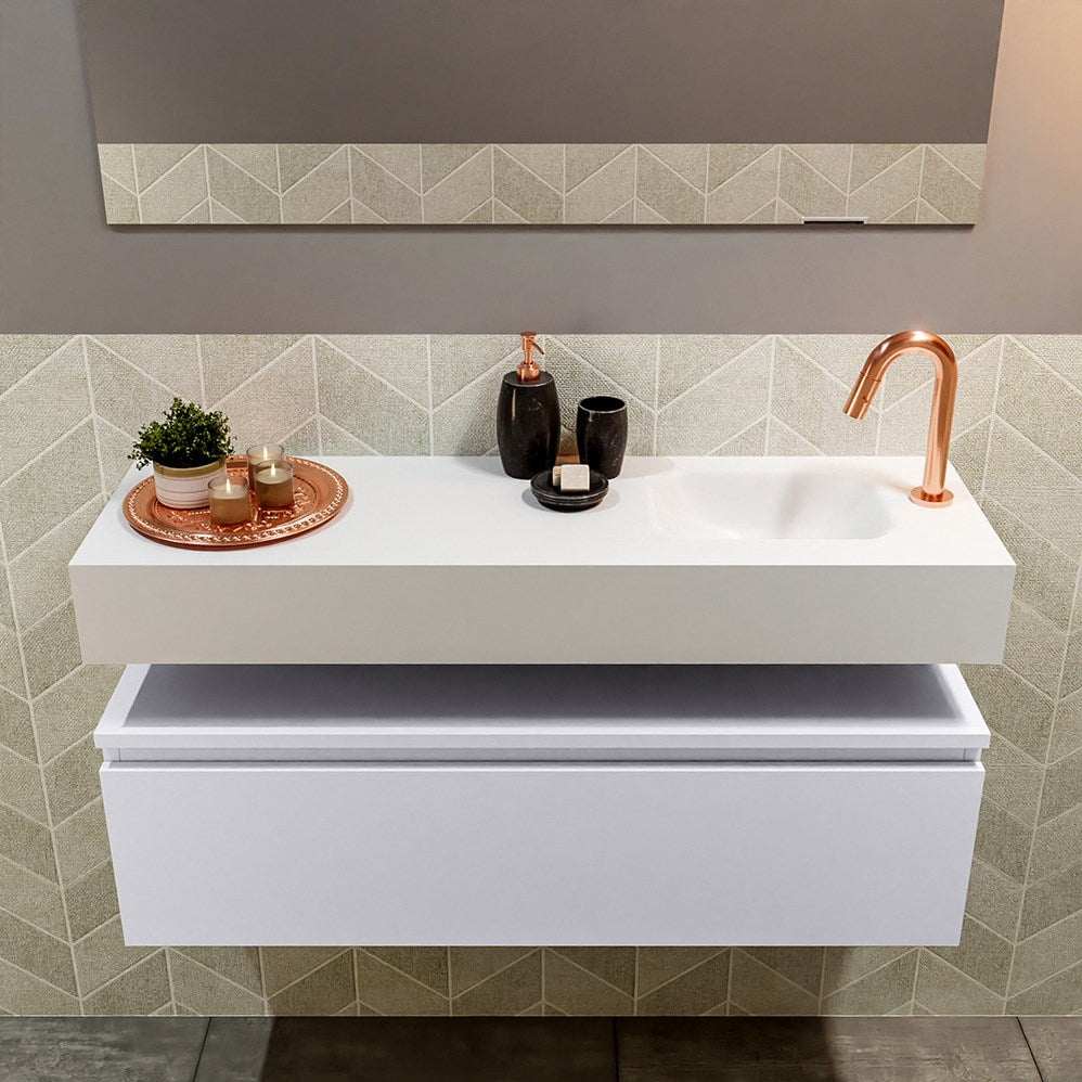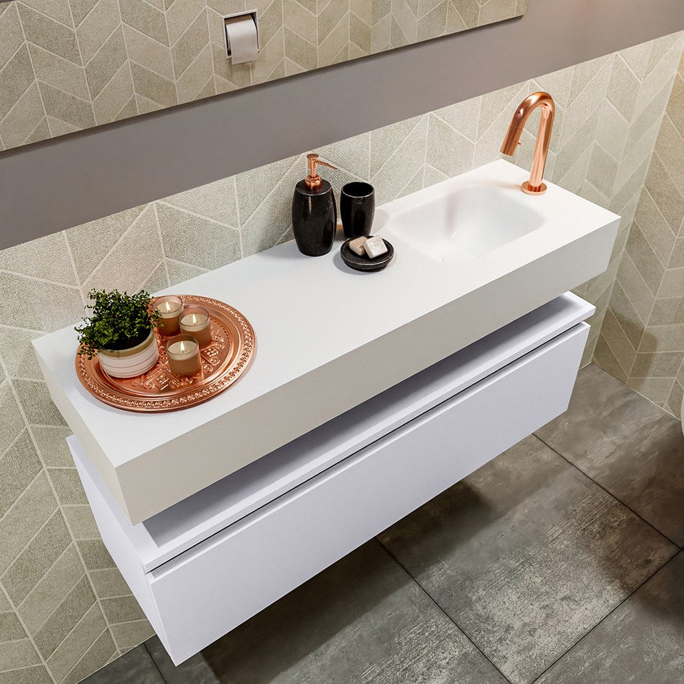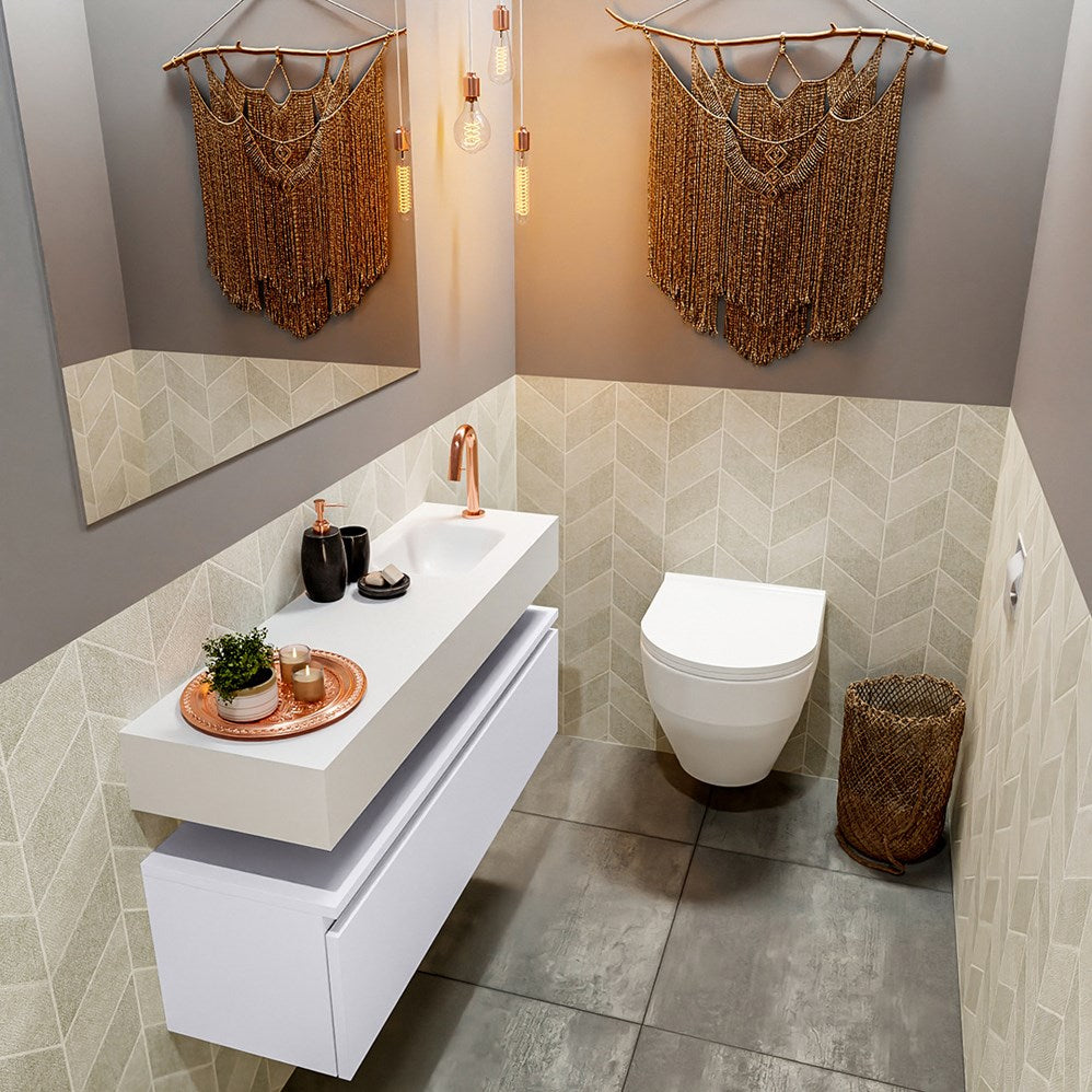 MONDIAZ ANDOR 100cm toiletmeubel cale. LEX 100cm wastafel talc positie rechts. Met 1 kraangat