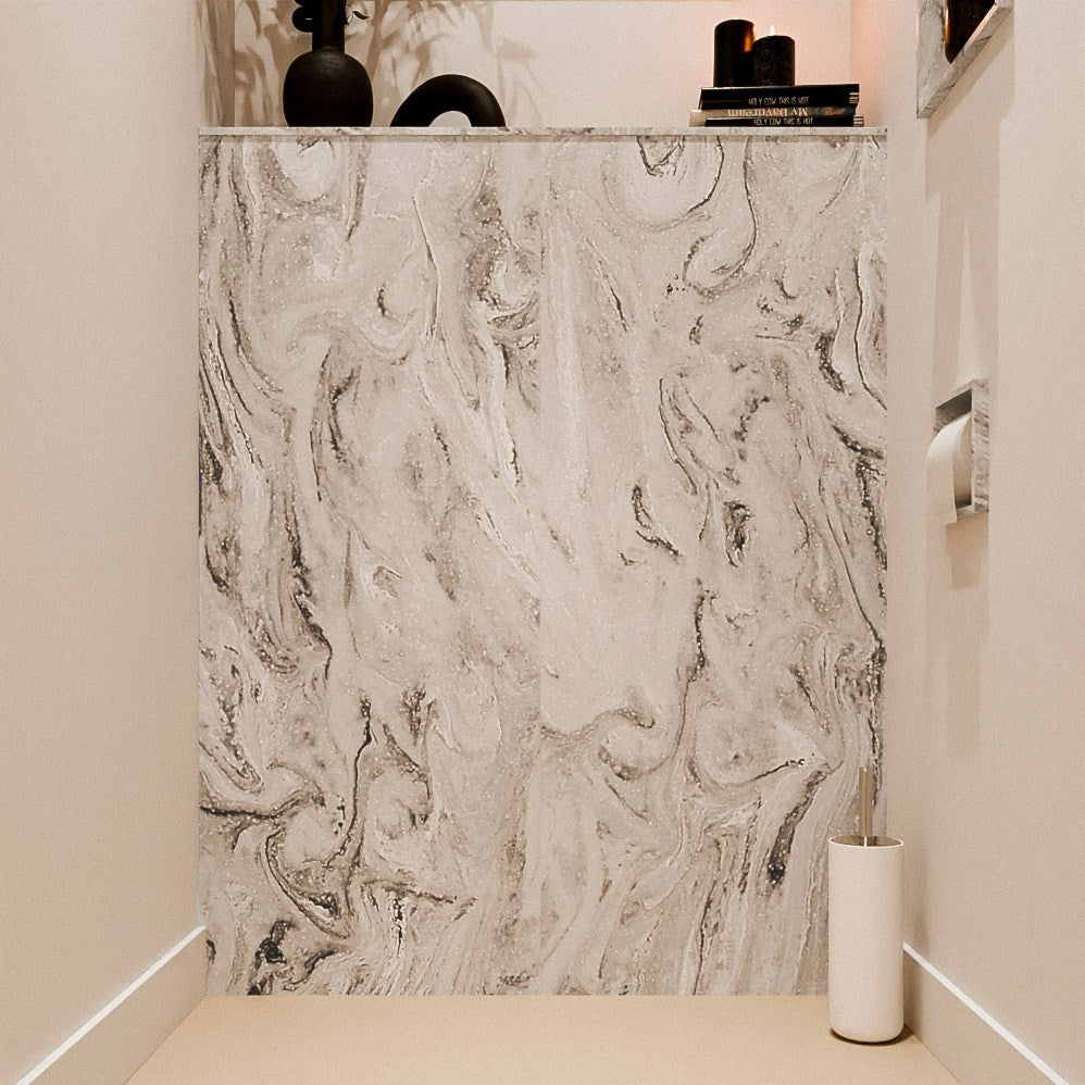 Deze set bestaat uit 1 toiletplaat van 100x125cm gecombineerd met een 1 planchetplaat van 100x23cm met beide een dikte van 12mm en is speciaal ontworpen voor een stijlvolle afwerking van jouw hangtoilet. Deze set wordt geleverd zonder vooraf geboorde gaten, het is daarom nodig om zelf gaten te boren om de plaat te installeren. Mocht je dat niet willen, dan hebben we deze set ook beschikbaar met voorgeboorde gaten voor extra gebruiksgemak. Het feit dat je na de installatie de muur niet meer hoeft te betegelen, bespaart niet alleen tijd maar voegt ook een strak en modern element toe aan de toiletruimte. De achterwand bestaat uit twee platen die naadloos aan elkaar zijn verlijmd, waarbij de naad wel zichtbaar maar niet voelbaar is. Deze subtiele naad valt precies in het midden van het toilet / bedieningsplaat. De planchetplaat bestaat uit ŽŽn enkele plaat. Tevens zijn de platen vervaardigd uit solid surface (Corian) materiaal en is maatwerk mogelijk!