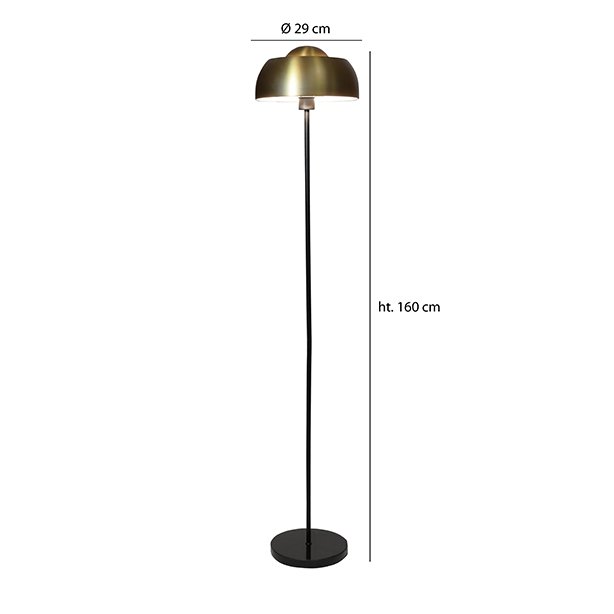 Zwart marmeren voet vloerlamp, gouden metalen lampenkap