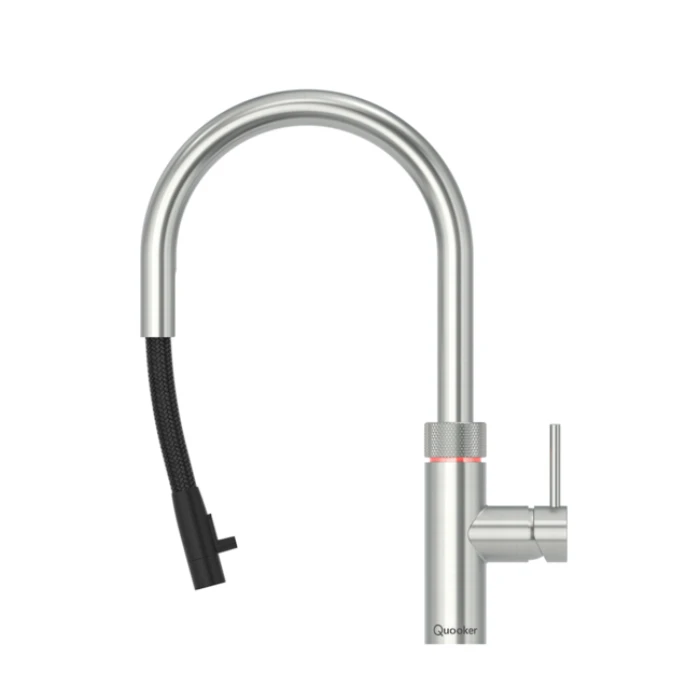 Dankzij de flexibele uittrekslang van de Quooker Flex kraan kun je letterlijk alle kanten op. Afwassen wordt hierdoor gemakkelijker en je kan alle hoekjes makkelijk meepakken. De Quooker Flex beschikt over een beveiliging waardoor er nooit kokend water uit de kraan kan komen wanneer de uittrekslang is uitgetrokken.
