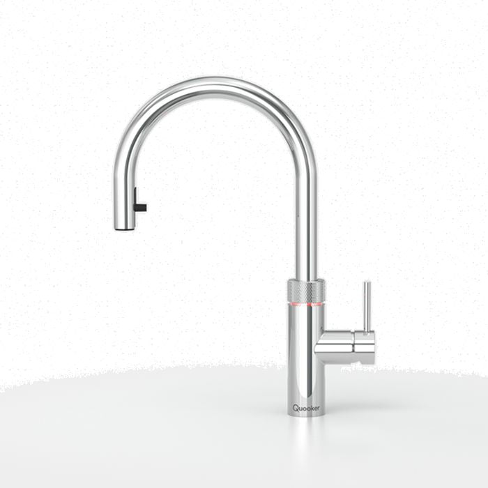 Een Quooker kraan geeft naast koud en warm water, ook kokend water. En dat allemaal uit één kraan! Super handig in de keuken bij het koken of om even snel een kopje thee klaar te maken. Deze Quooker kraan is uitgevoerd in tijdloos chroom en past daardoor in iedere keuken.